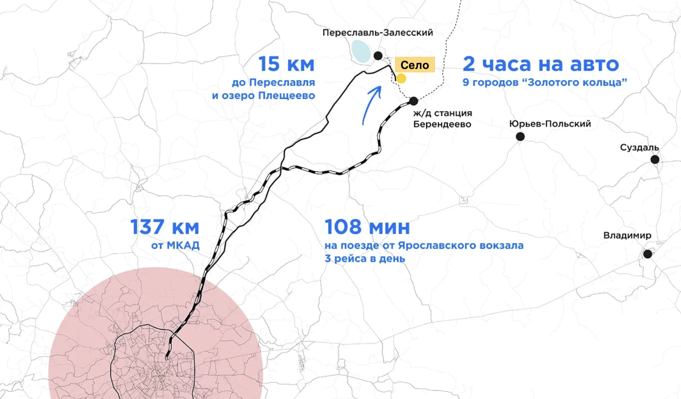 "Село" расположено в центре Золотого кольца. Отсюда удобно совершать путешествия на один или несколько дней. Для этого ПОШ создаст клуб путешественников.
