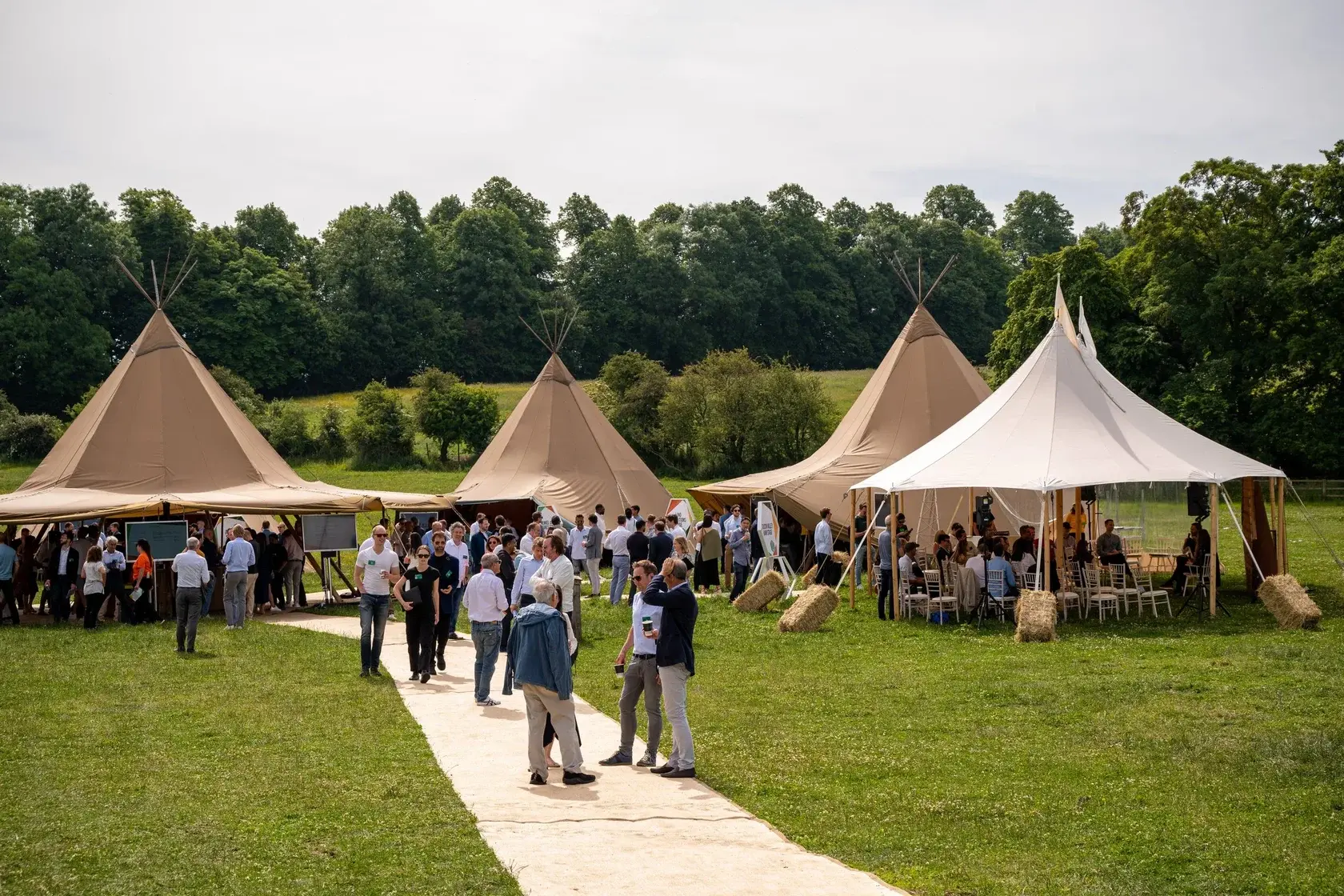 - На территории AZIMUT построен шатер на 400 гостей, а также 3 небольших шатра на 30 гостей каждый.