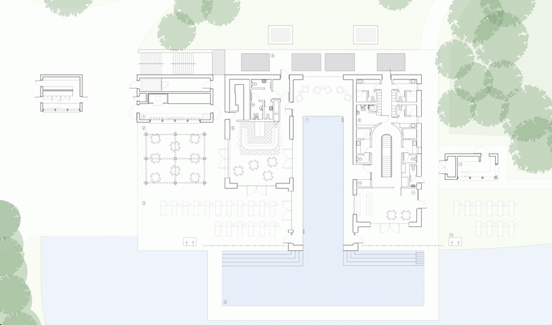 - На берегу озера расположены крытый и открытый бассейны, теннисные корты и корты для падела, а также тренажерный зал с широким выбором кардио- и силовых тренажеров. В тренажерном зале также предлагаются персональные тренировки, восемь фирменных фитнес-классов и конный спорт.