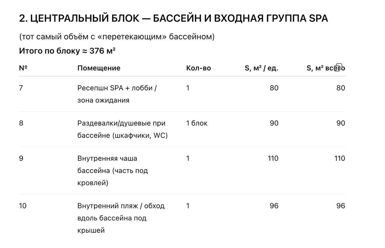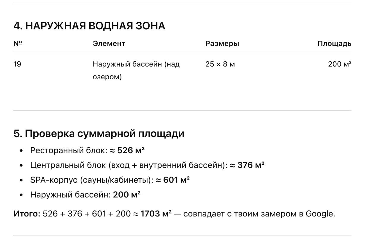 Площадь СПА с рестораном = 1700 квм. Площадь бассейна на улице 25 на 8 метров.