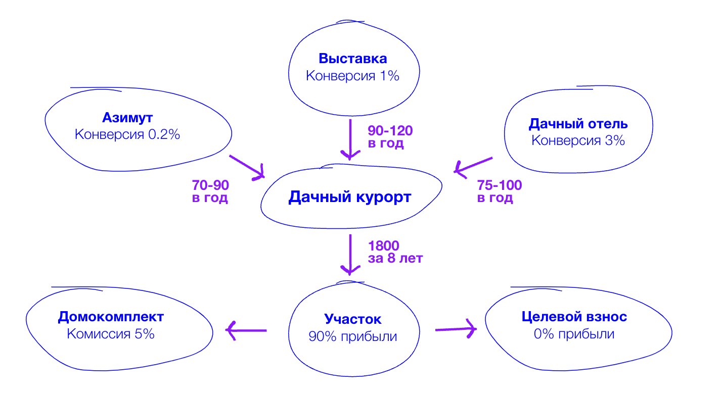 - Клубы дачные поселки по 100 домовладений. Открытие первого клуба в 2027 году.